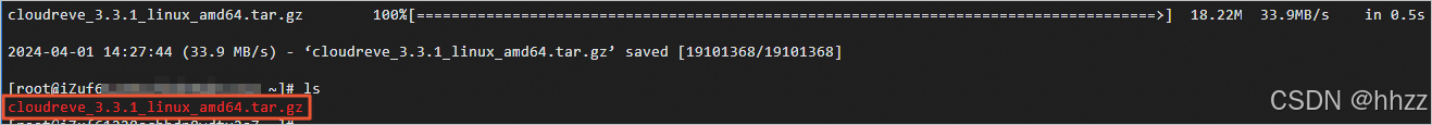 返回结果如下所示,即完成cloudreve安装包的下载。