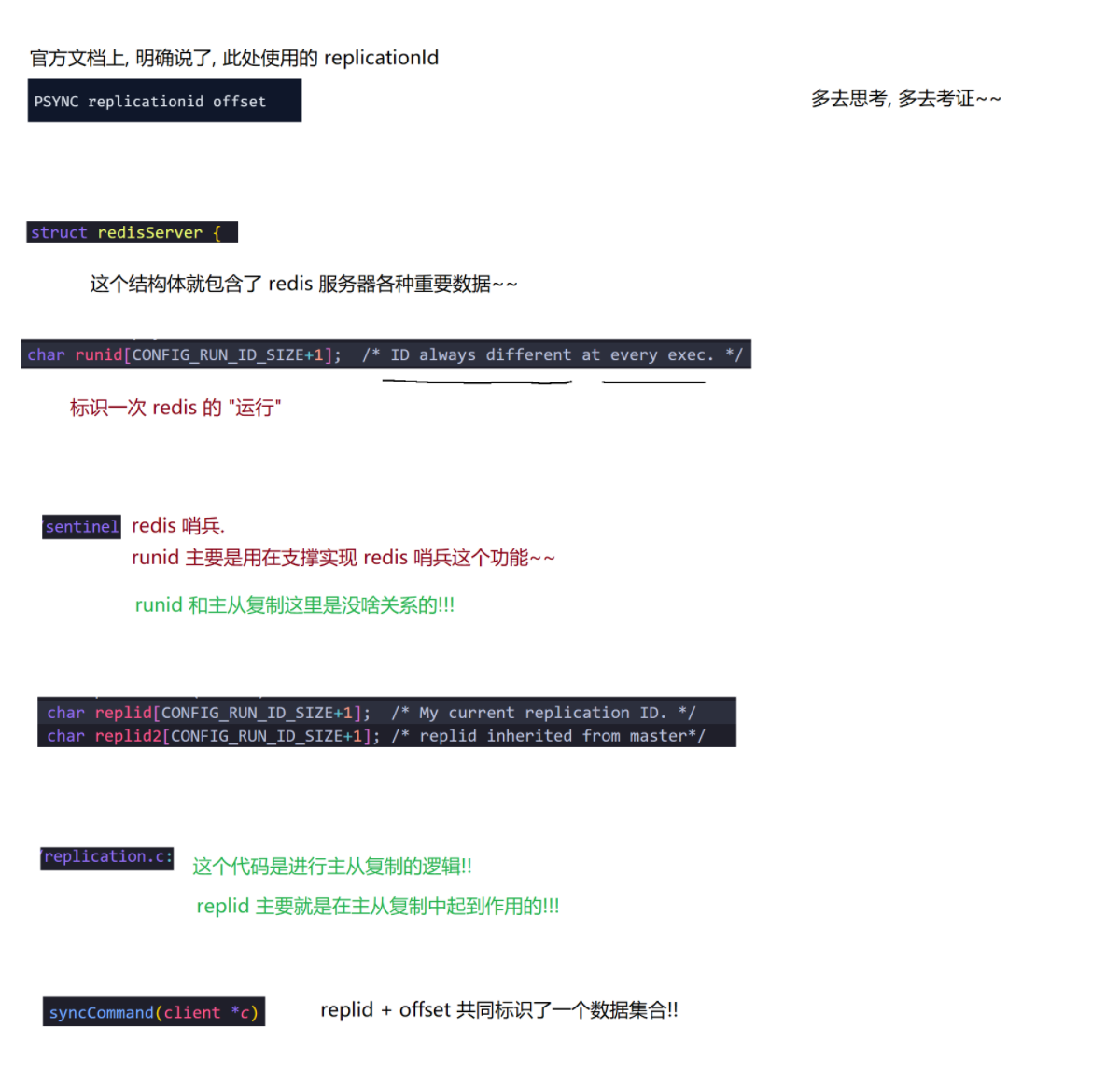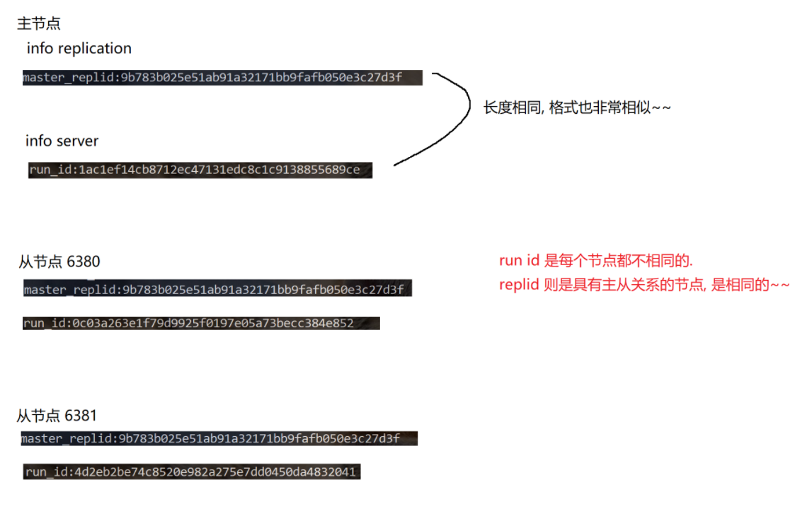 一个redis 服务器上,replicationid和 runid是都存在的!!!两个不同的id,看起来非常像