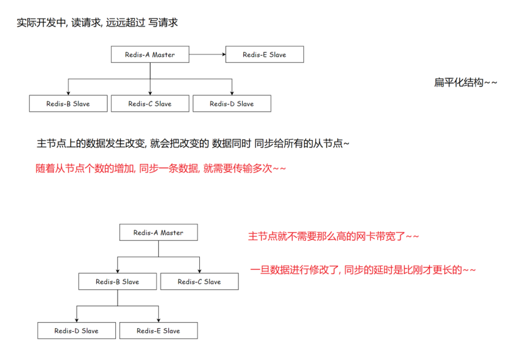 正常来说,这个延时是比较短的.但是如果是多级从节点的树形结构~~如果这里从节点的级别很多~~(有很多层),延时也就会上升