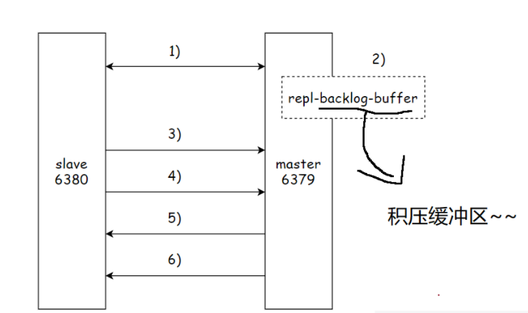 主从连接中断期间主节点依然响应命令,但这些复制命令都因网络中断无法及时发送给从节点,所以暂时将这些命令滞留在复制积压缓冲区中。