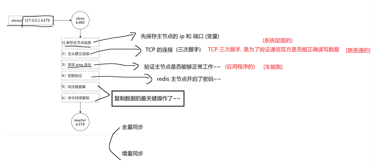 当从节点执行 slaveof <master-ip> <master-port> 后,会发生以下过程: