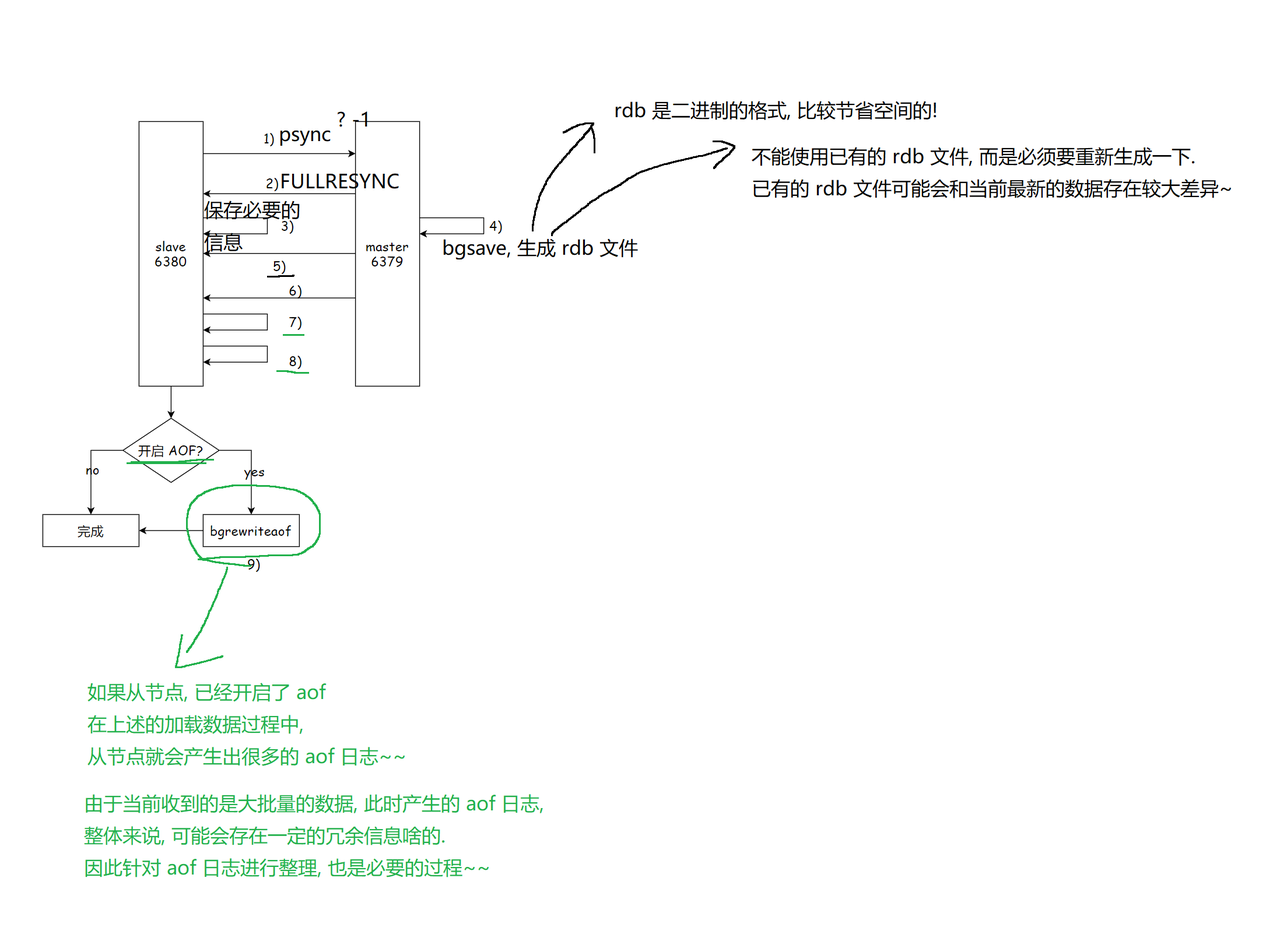 如果从节点加载RDB完成之后,并且开启了AOF持久化功能,它会进行bgrewrite操作,得到最近的AOF文件。