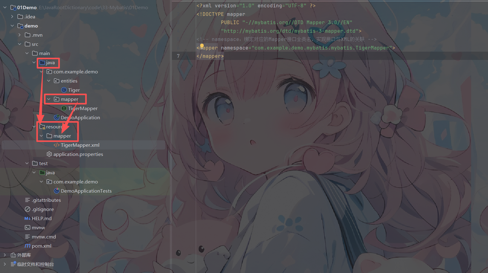 1.1.2 在对应的resource文件夹建立对应Mapper包,并赋值namespace