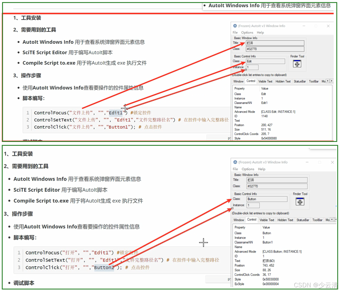 - 使用Autolt Windows Info查看要操作的控件属性信息