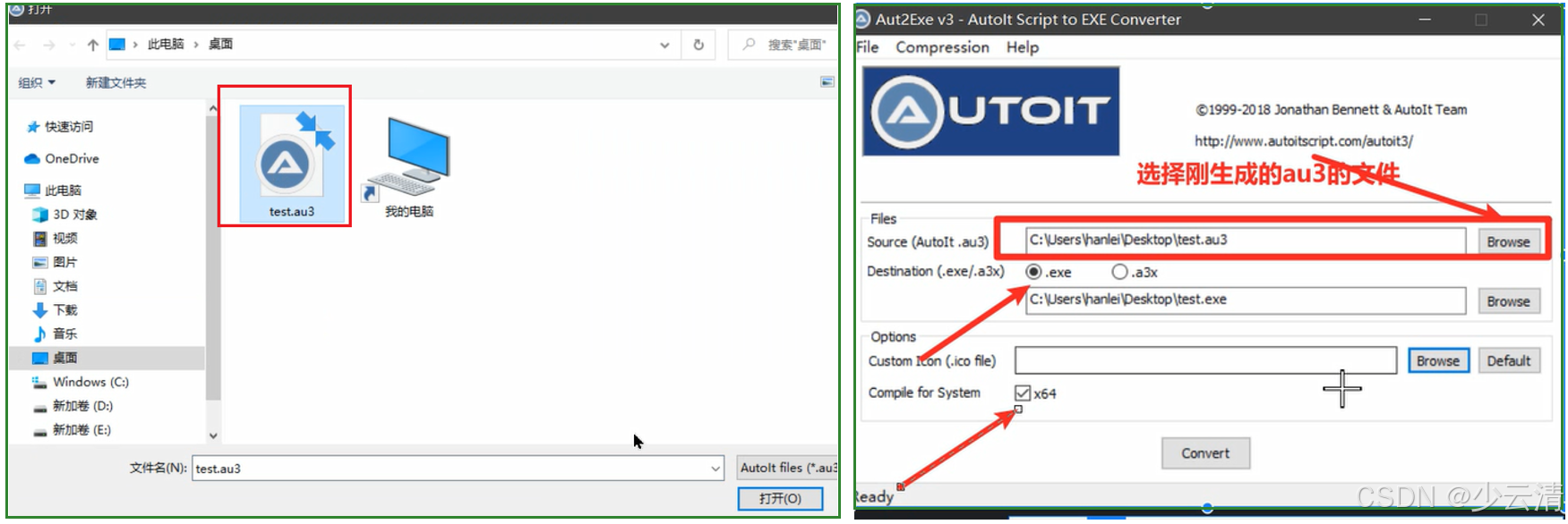- 使用Compile script to.exe转换成exe文件,64位