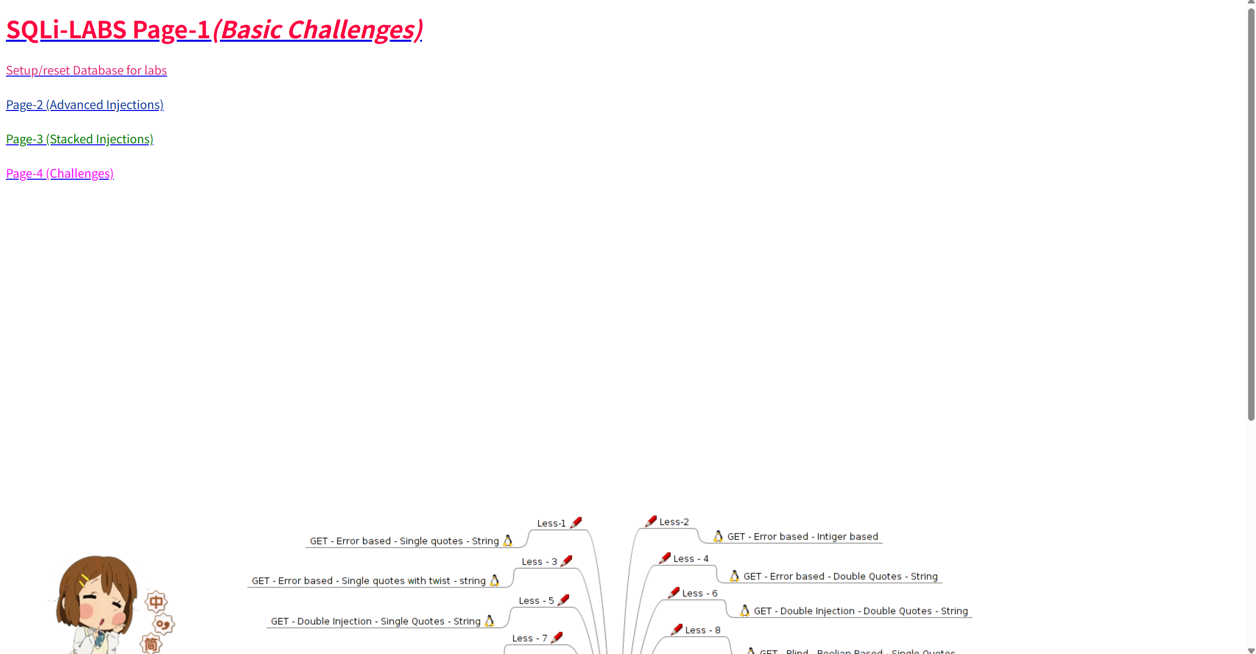 SQLi-LABS 是一个专注于SQL注入漏洞的专项靶场,它包含了超过60种不同类型的SQL注入场景,是深入学习SQL注入的绝佳选择。