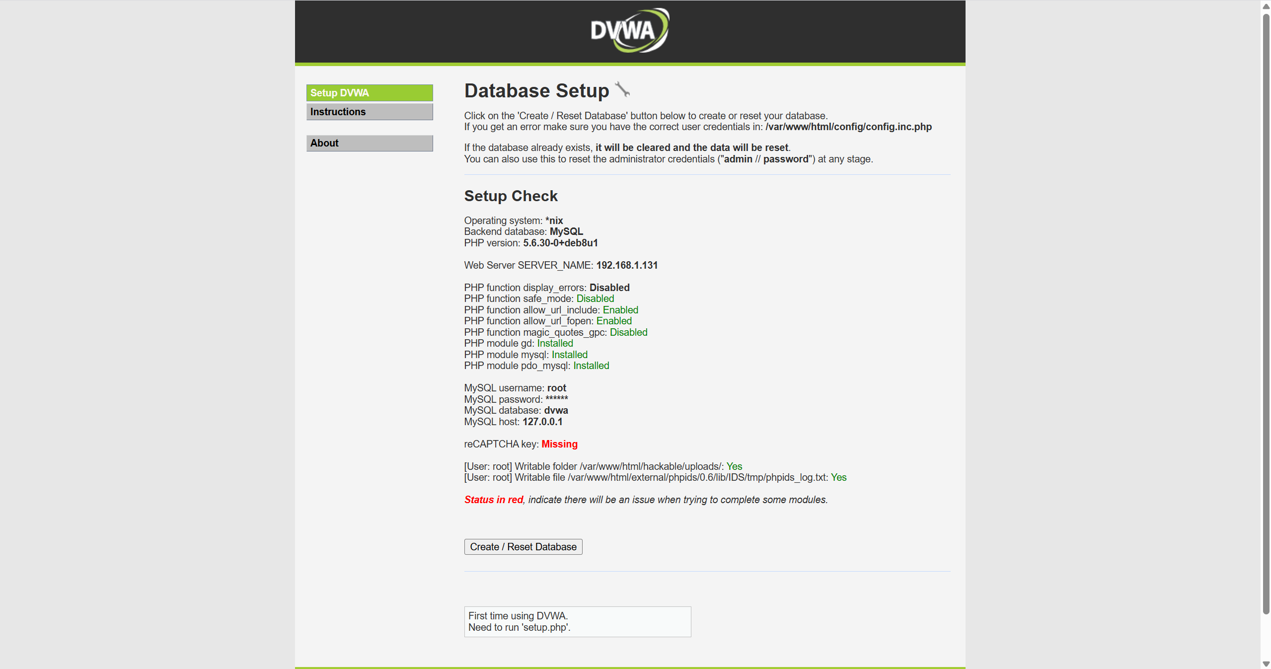 docker pull sagikazarmark/dvwa