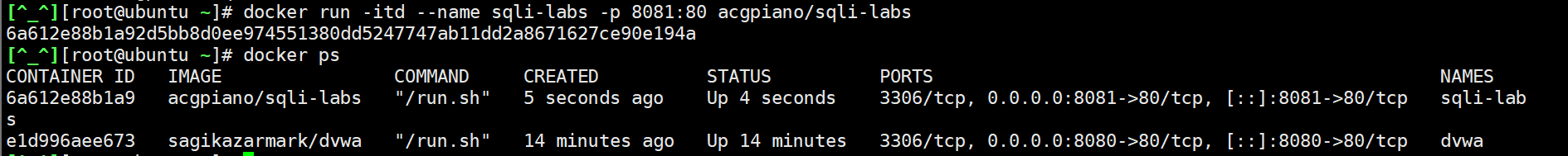 docker run -itd --name sqli-labs -p 8081:80 acgpiano/sqli-labs