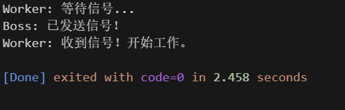 cout << "Worker: 收到信号!开始工作。" << endl;