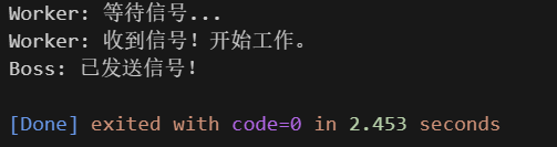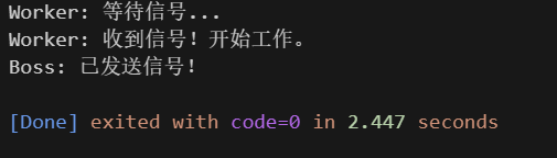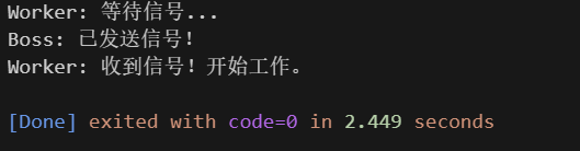 cout << "Boss: 已发送信号!"<< endl;