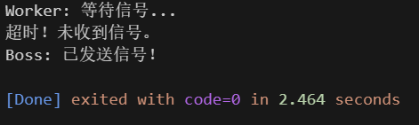 cout << "Worker: 超时!放弃等待。\n";