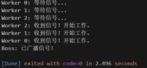 cout << "Boss: 已广播信号!" << endl;