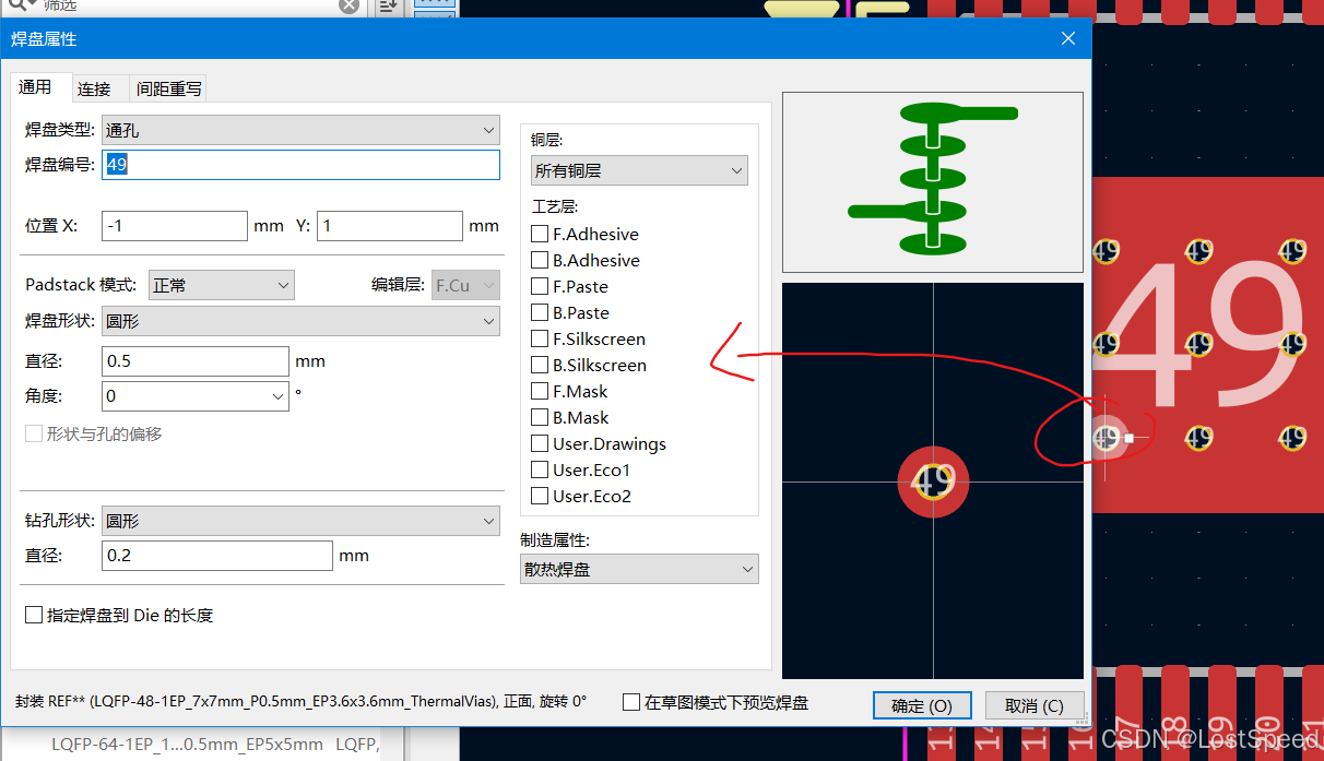 在封装编辑器中,双击焊盘,焊盘的属性就显示出来了,和.kicad_mod中自己不明白的焊盘数据对一下,就很清楚了。
