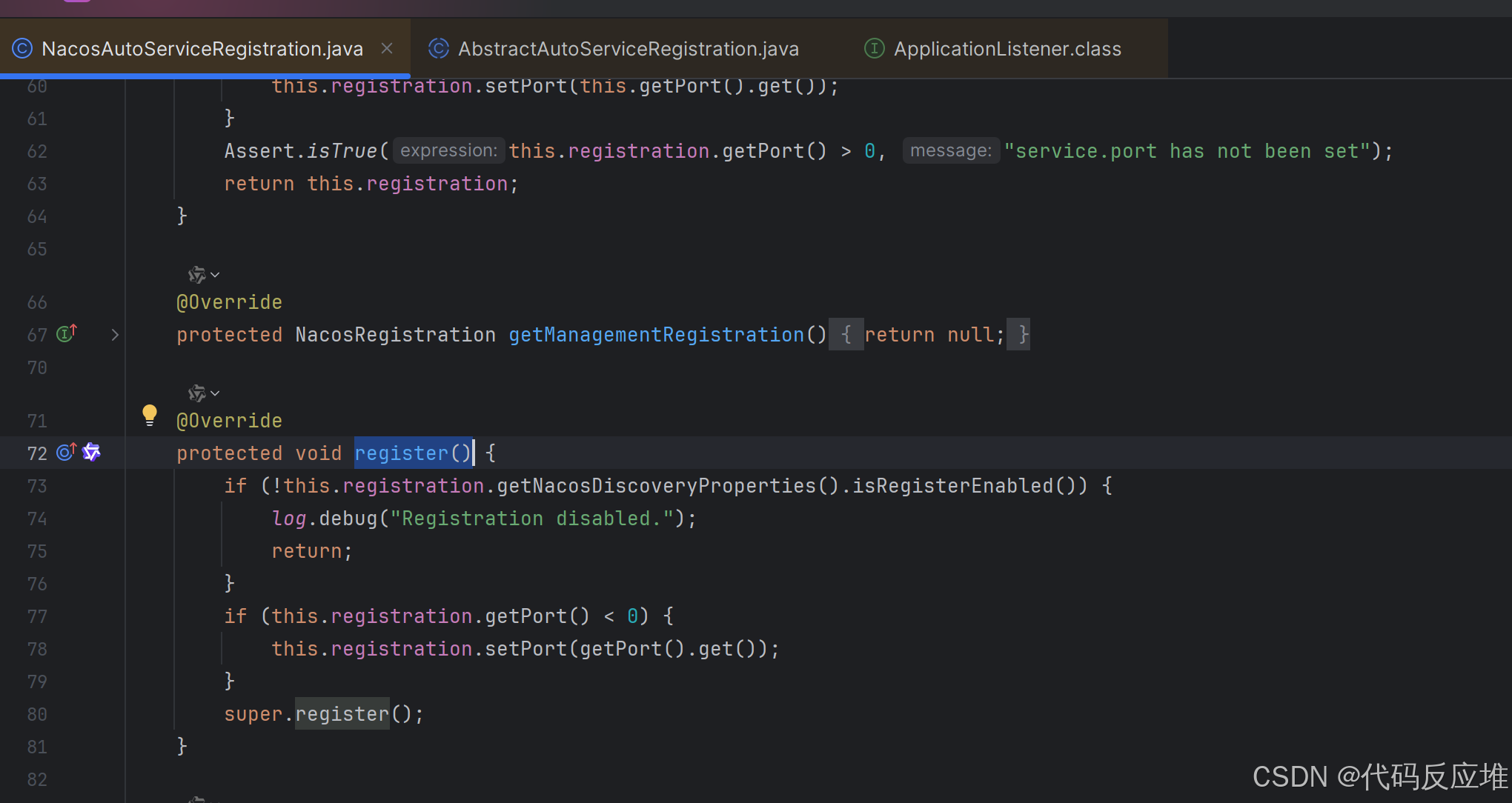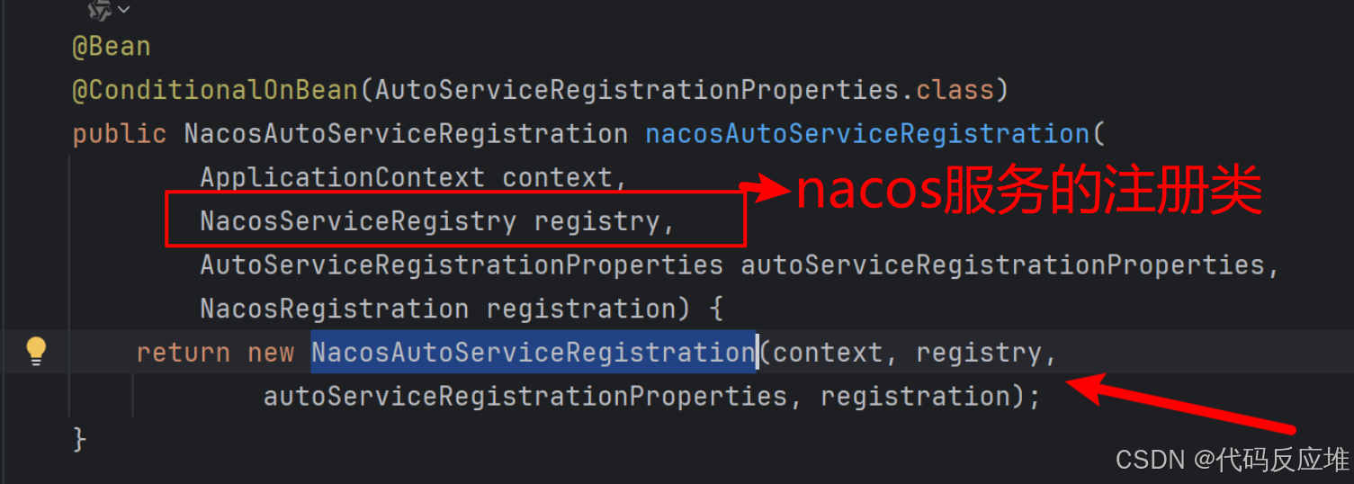 (方法getRegistration()返回NacosRegistration作为入参,其中记录了客户端的基本信息,如端口、应用名等,当前不做讲解)