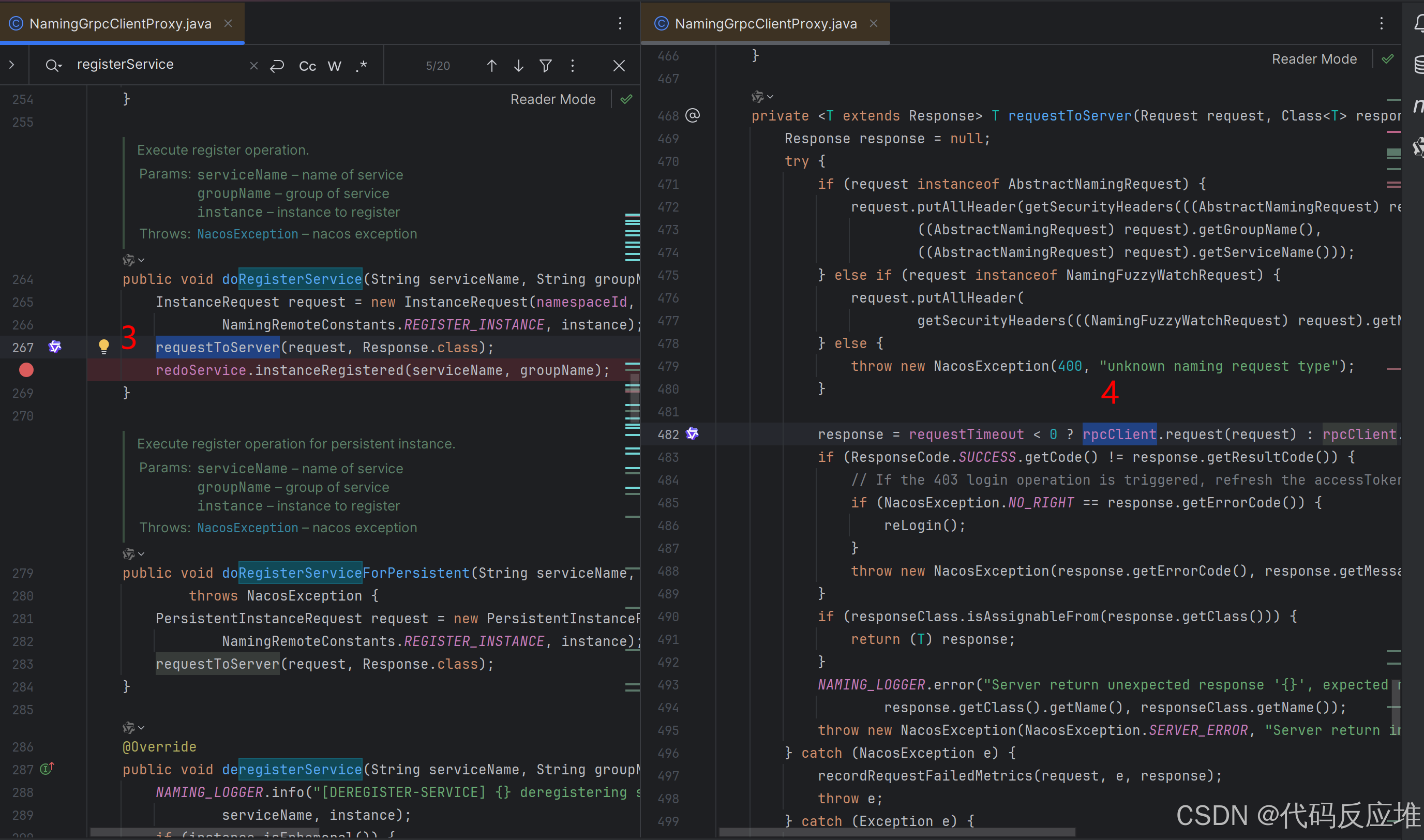 这里的rpcClient是Nacos封装的gRPC客户端,它会与服务端建立长连接,并通过该连接发送注册请求。该连接被用于注册、心跳、订阅操作。