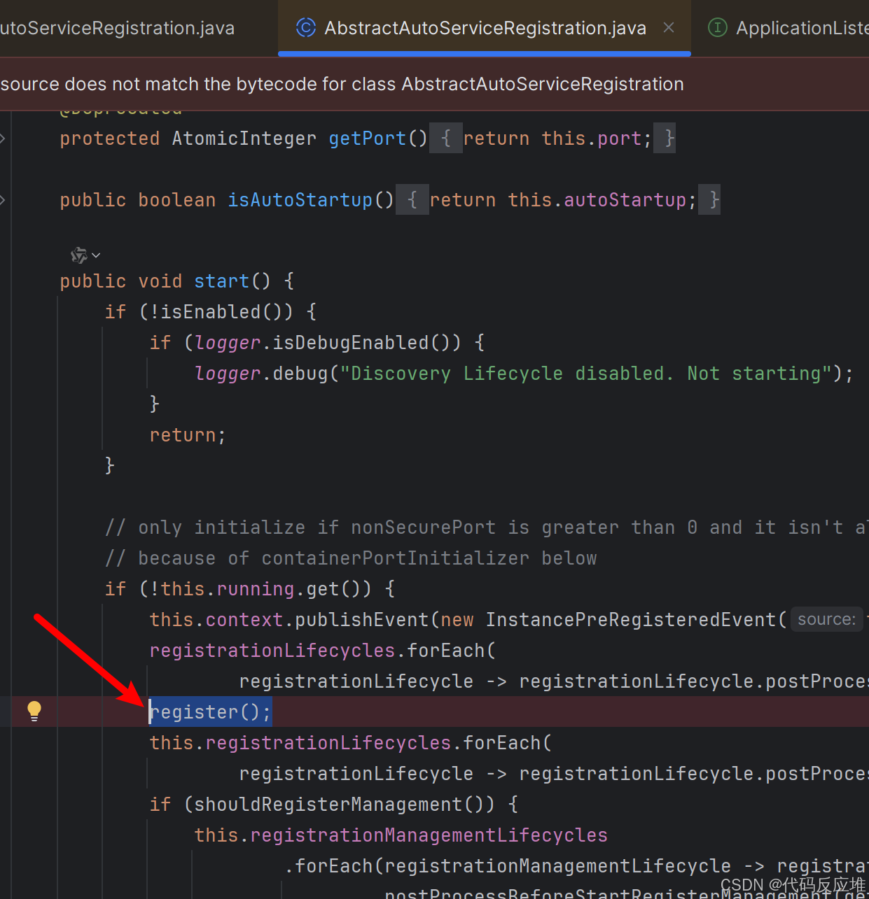 子类中检查了是否开启注册开关和检查了端口,后调用父类register()方法