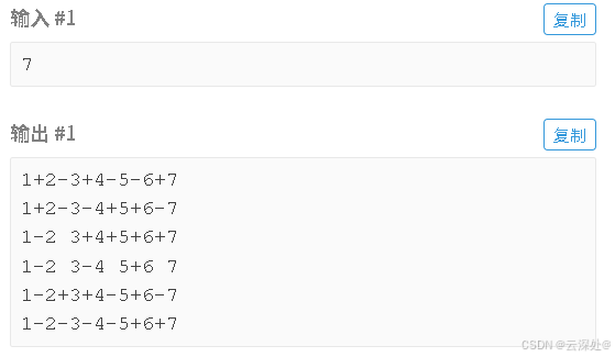 - 观察到输入一个数字N时,得到的数列有7个数字6个符号(可使用char数组存储符号),且数字递增。每一组数据的整数不变,变的只有符号,因此返回时可以使用string类型