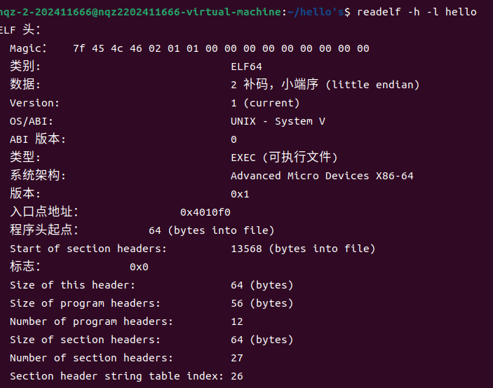 解析hello的ELF程序头表,为LOAD段分配虚拟地址。