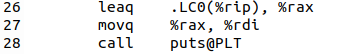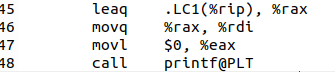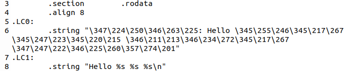 .LC0、.LC1 是编译器自动生成的唯一标签,用于标识两个字符串的起始地址,后续汇编指令通过标签引用字符串。