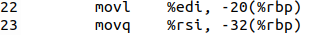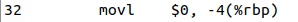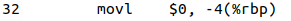 源操作数$0是立即数,目标操作数-4(%rbp)是局部变量i的栈帧地址。