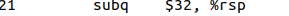 i为int 型(4字节),分配%rbp - 4至%rbp - 1共4字节空间;subq $32, %rsp 扩容32字节,除i外,还包含函数调用的参数临时存储区、栈对齐填充空间。