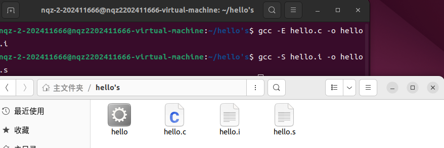 命令:gcc -S hello.i -o hello.s(-S 表示仅执行预处理和编译,停止汇编过程)。