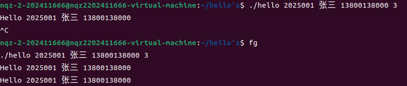 C 源码:提示字符串:用法: Hello 学号 姓名 手机号 秒数!\n