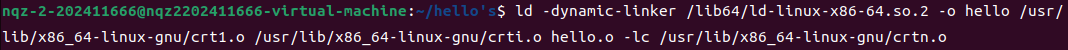 链接:符号解析与重定位,合并库文件,生成可执行文件hello。