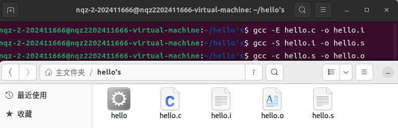 展开了stdio.h等头文件的函数声明、宏定义:hello.c只有24行,hello.i数千行;