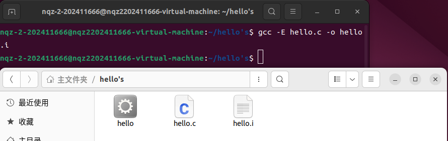 命令:gcc -E hello.c -o hello.i(-E 表示仅执行预处理,停止后续编译过程)