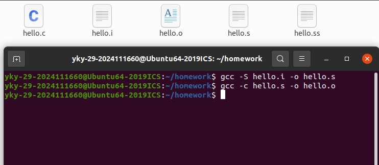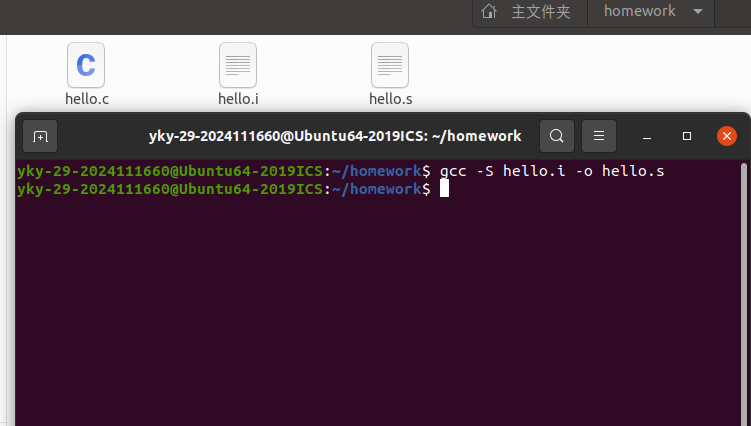 | hello.s | 编译后得到的汇编语言文件 |