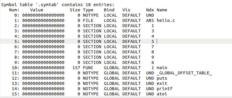 | hello.o | 汇编后得到的可重定位目标文件 |