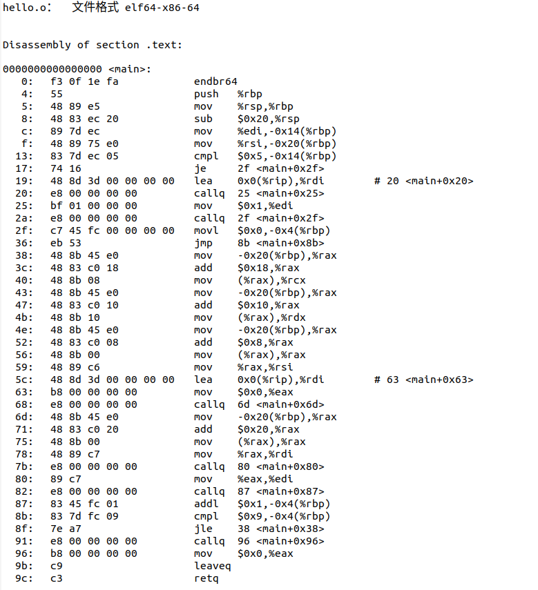 | hello.asm | 反汇编hello得到的反汇编文件 |