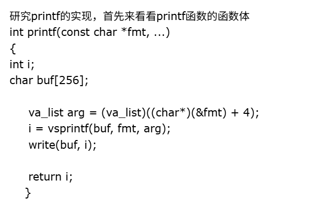 则知道vsprintf程序按照格式fmt结合参数args生成格式化之后的字符串,并返回字串的长度。在printf中调用系统函数write(buf,i)将长度为i的buf输出。write函数如下:printf函数的功能为接受一个格式化命令,并按指定的匹配的参数格式化输出,故i = vsprintf(buf, fmt, arg)是得到打印出来的字符串长度,其后的write(buf, i)是将buf中的i个元素写到终端。因此,vsprintf的作用为接受确定输出格式的格式字符串fmt。用格式字符串对个数变化的参数进行格式化,进而产生格式化输出。