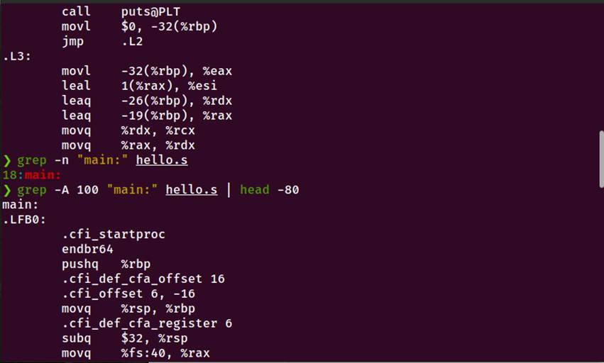 编译阶段:gcc -S将C代码转换为x86-64汇编代码hello.s