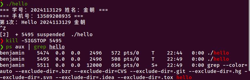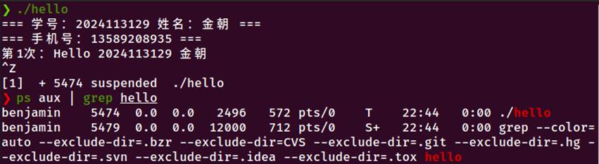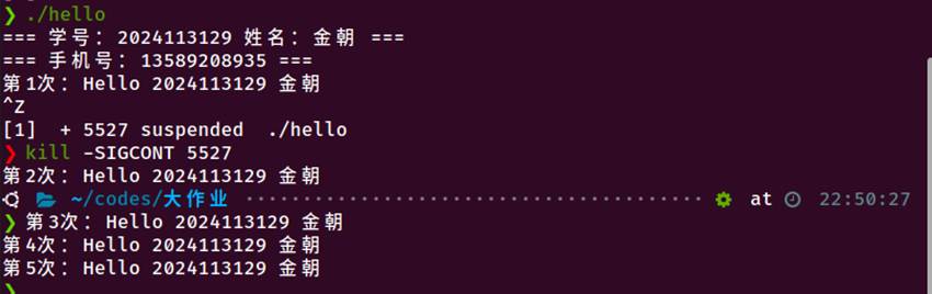 SIGTSTP(Ctrl-Z):进程暂停,恢复后继续等待