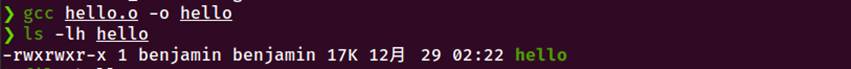 5.链接:gcc 将hello.o与库文件链接,生成可执行文件hello
