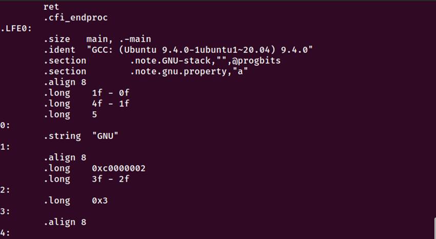3.编译:gcc -S 将C代码转换为汇编代码,生成hello.s