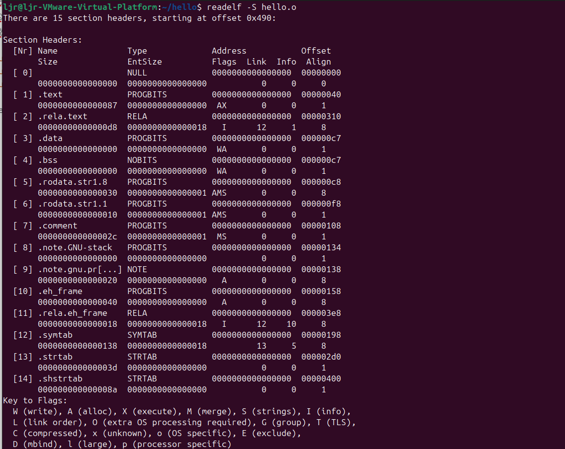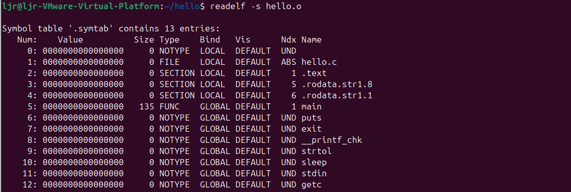 | hello.o | 汇编后生成的可重定位目标文件(ELF格式),包含机器码、符号表和重定位信息,用于分析目标文件结构。 |