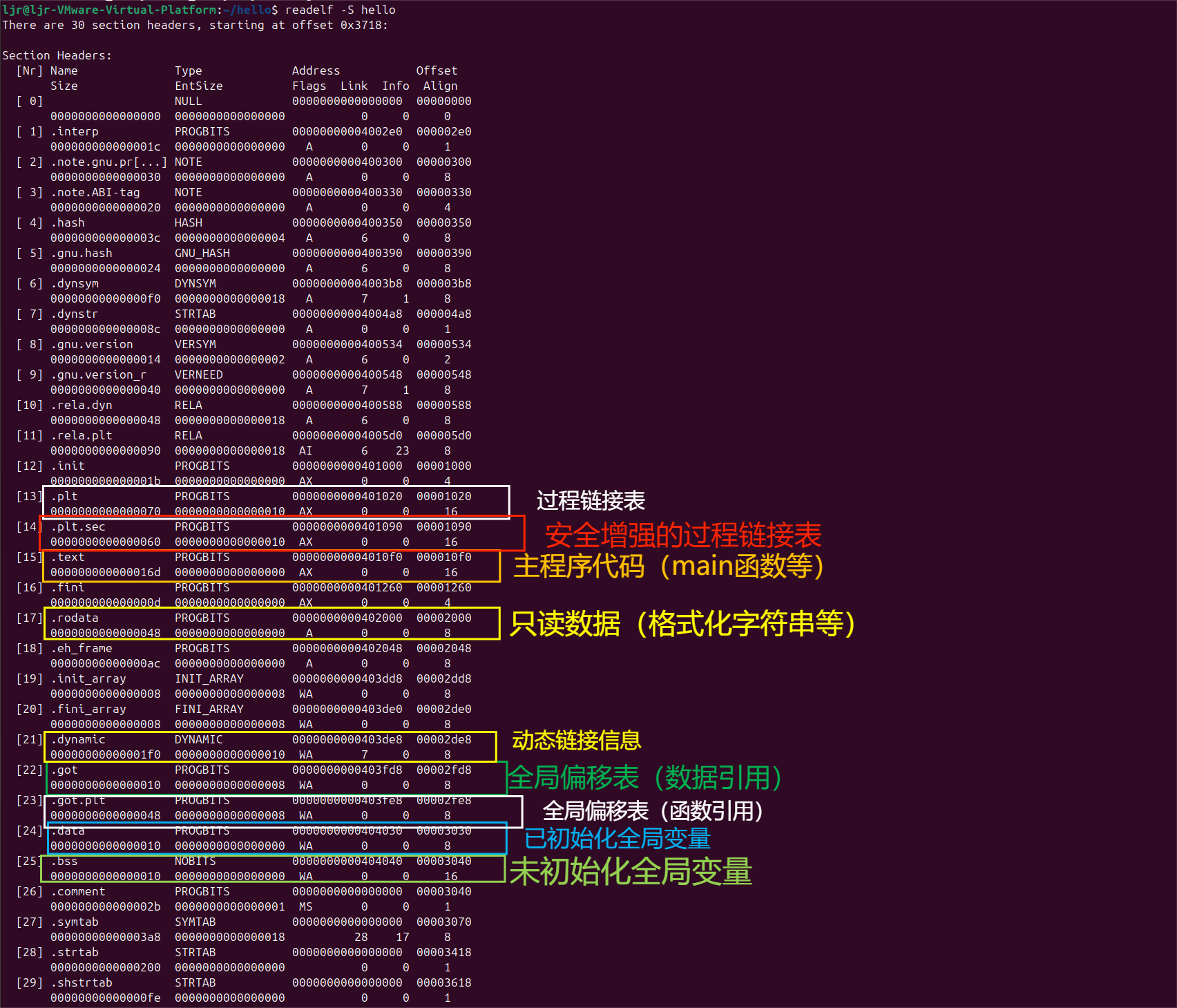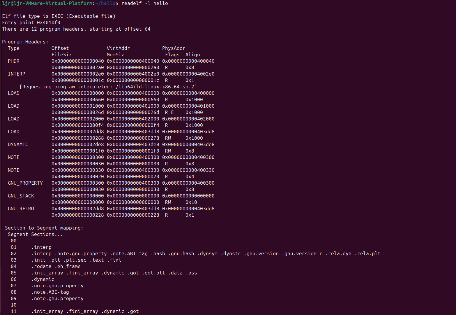 解析ELF头部:确定各段的文件偏移、虚拟地址、大小