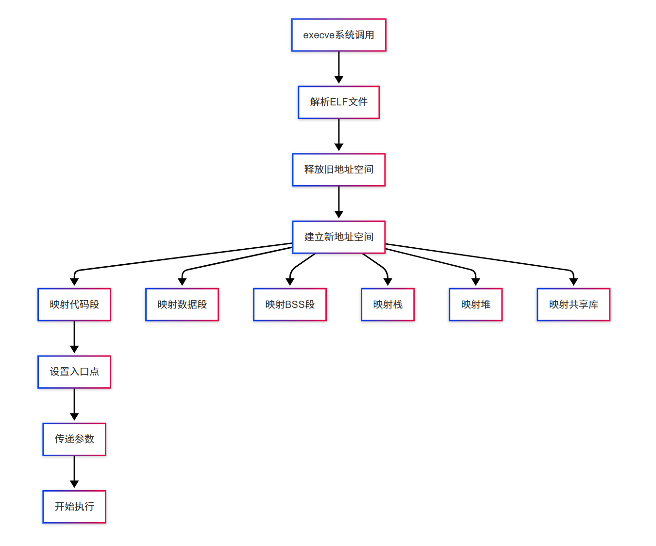 图 91 execve()时的内存映射过程