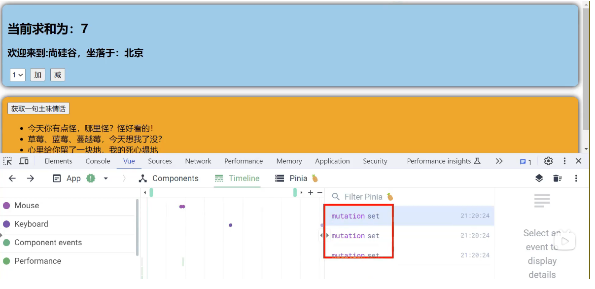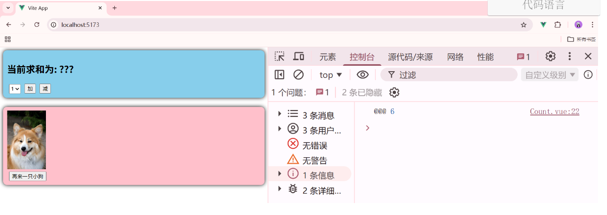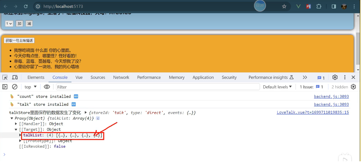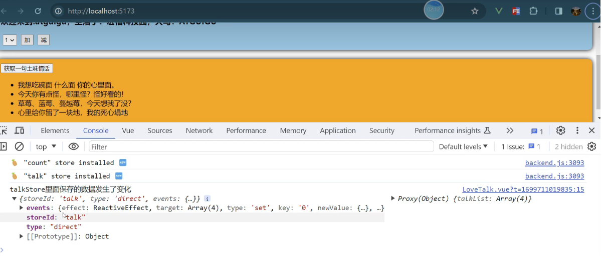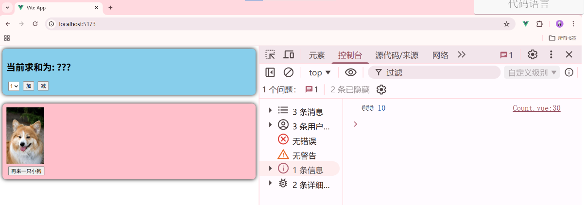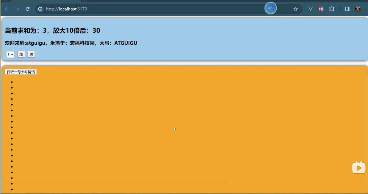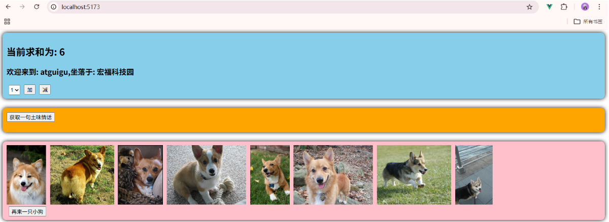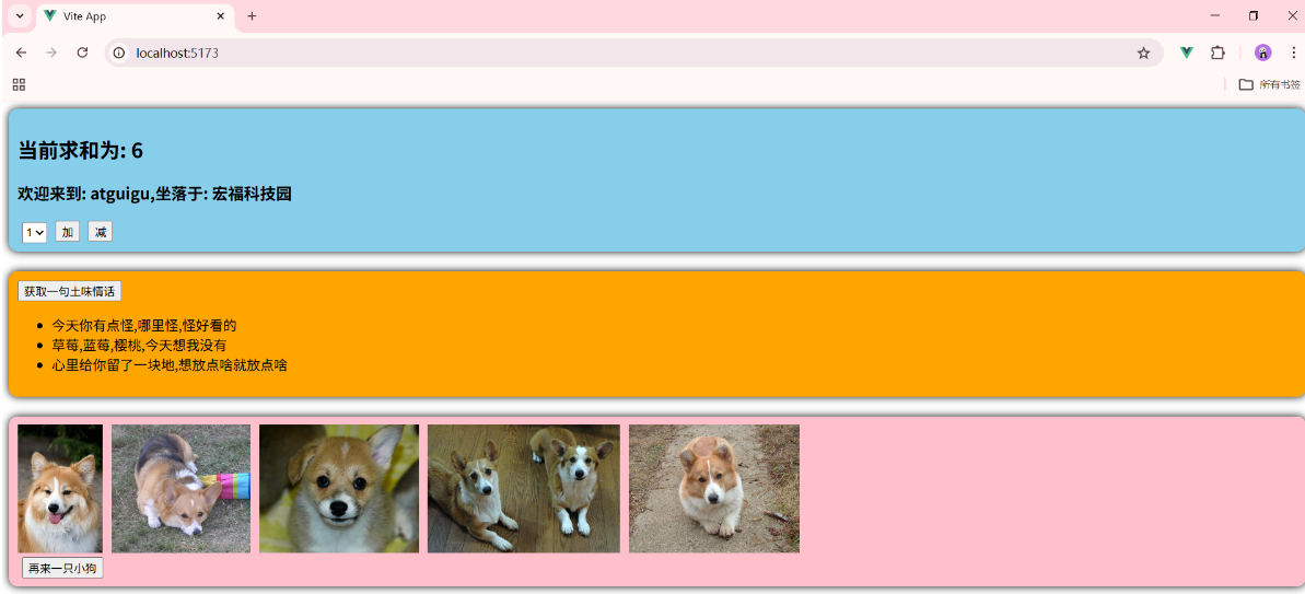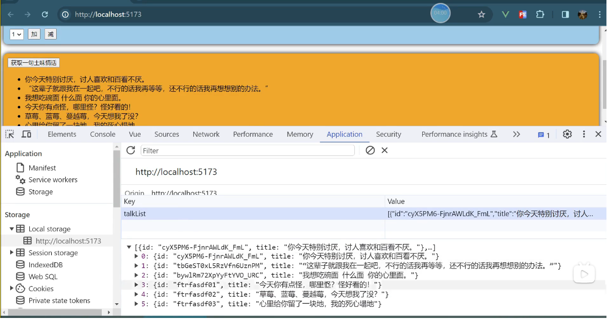 一个组件保存求和的值,一个组件保存着获取一句土味情话