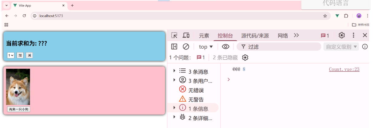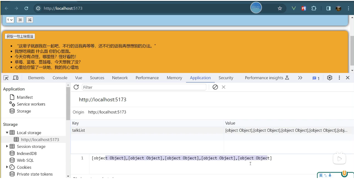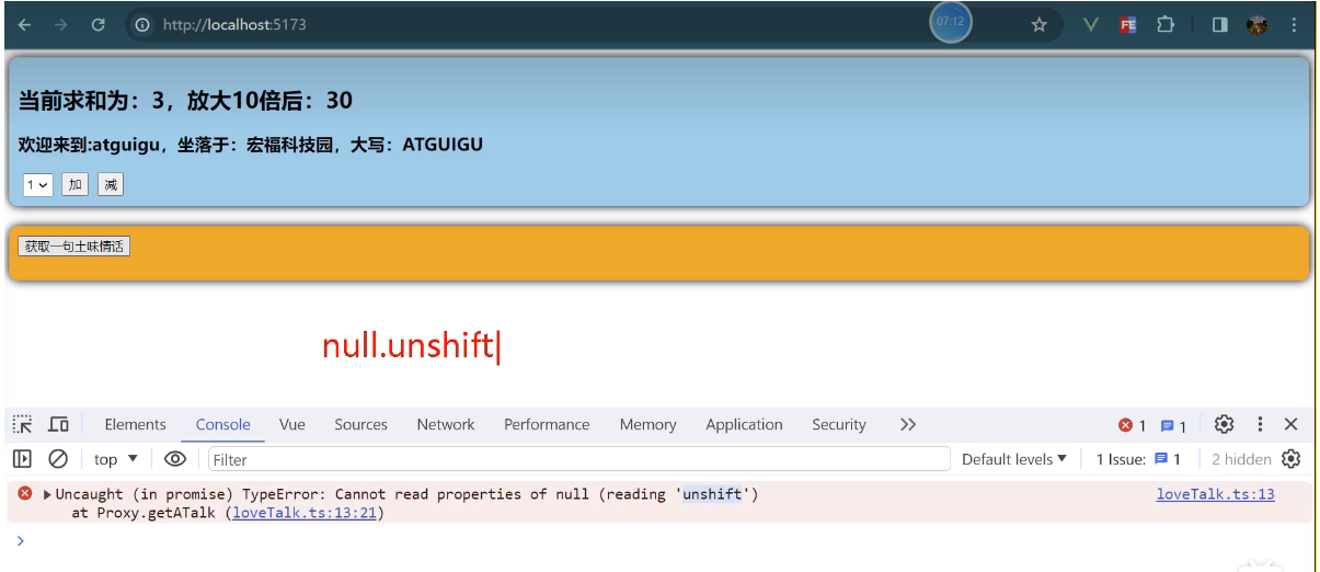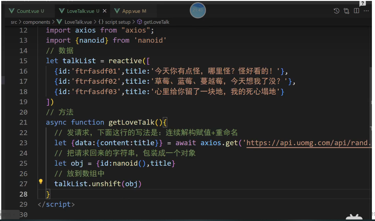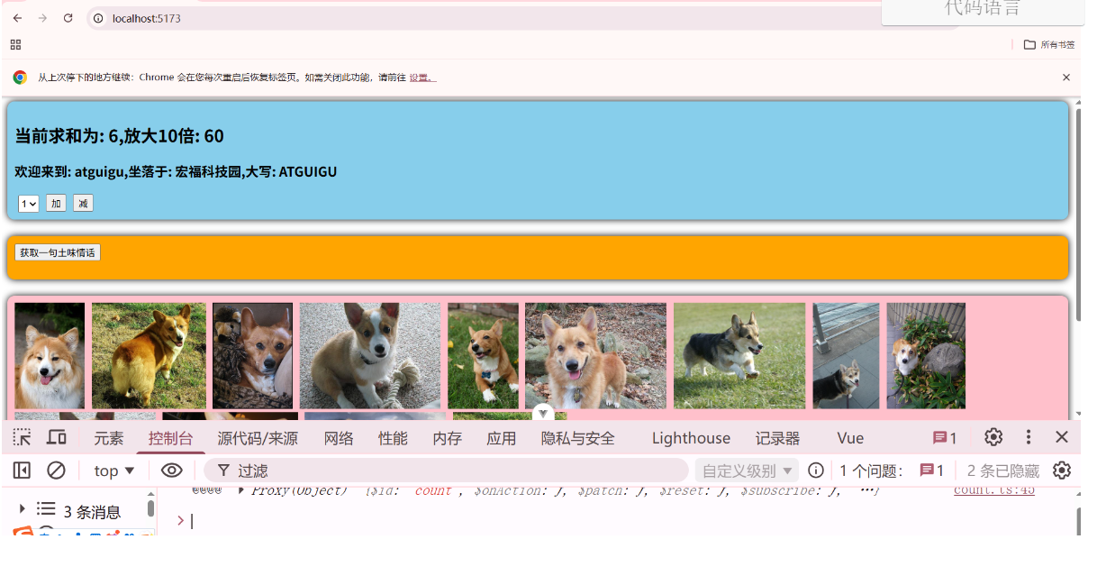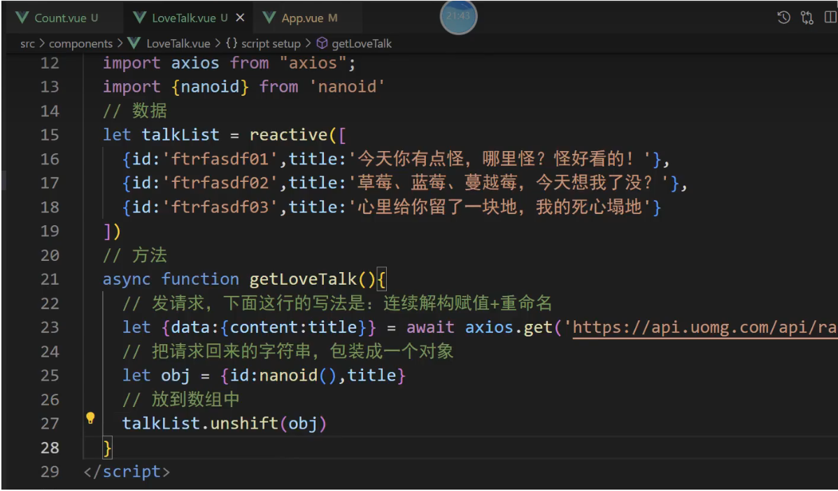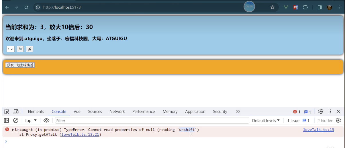 一个组件保存求和的值,一个组件保存着获取一句土味情话