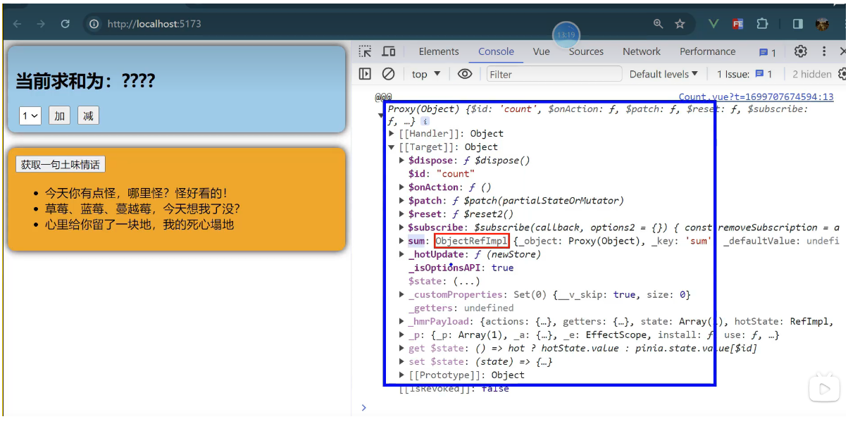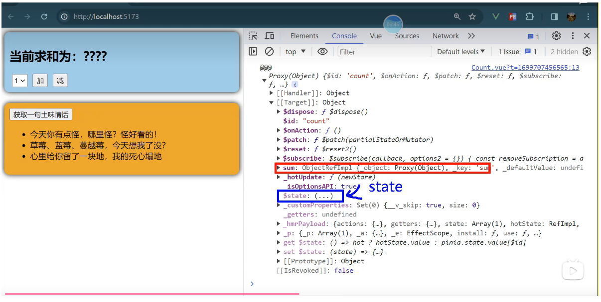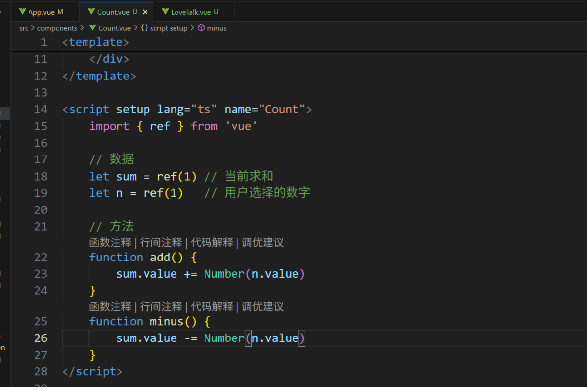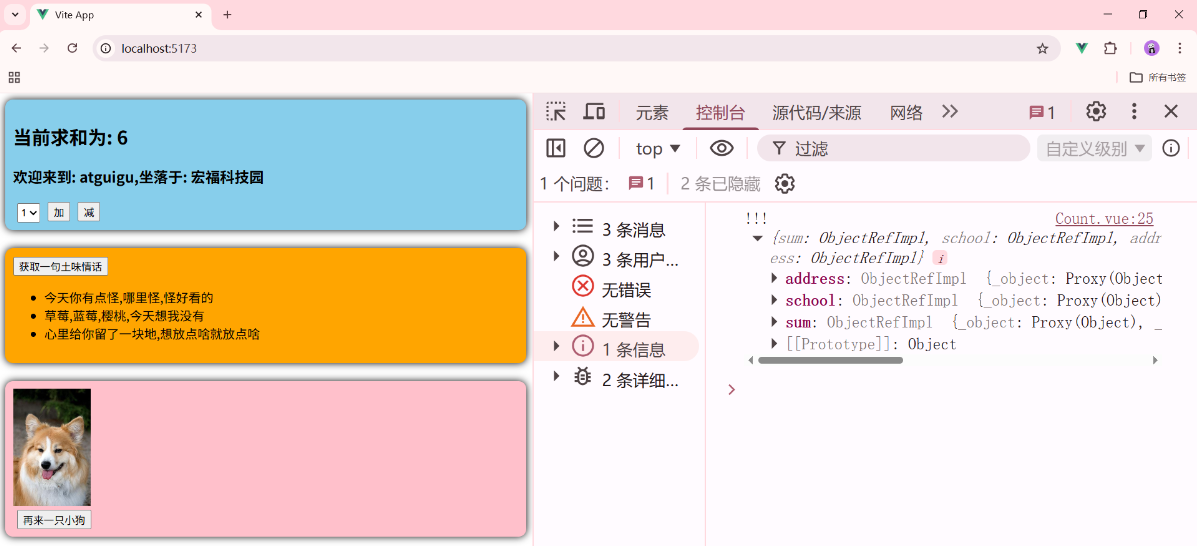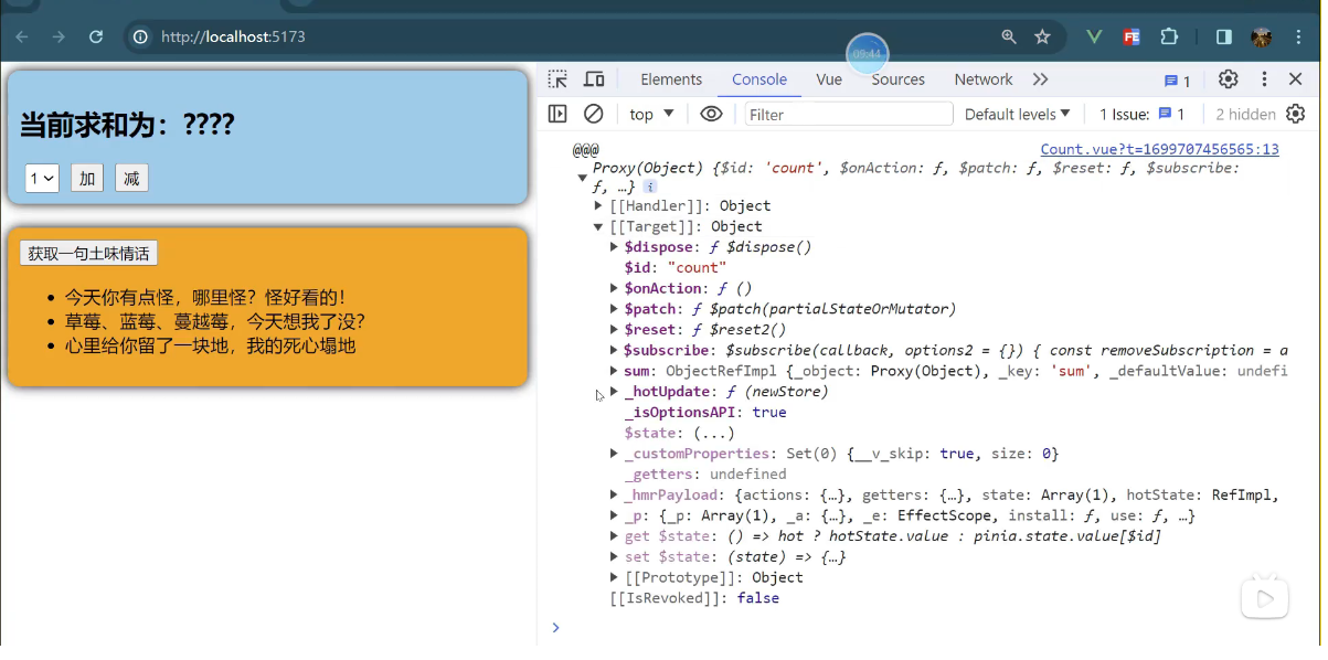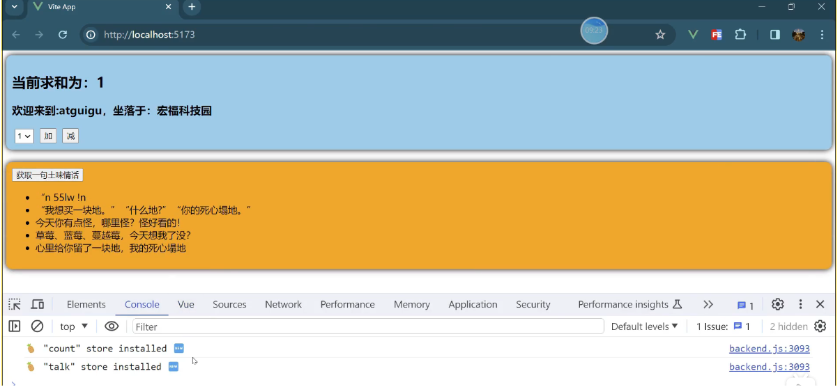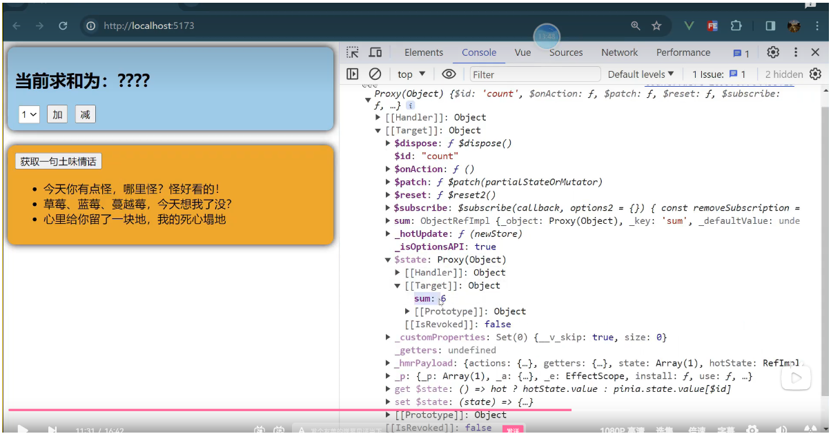 一个组件保存求和的值,一个组件保存着获取一句土味情话