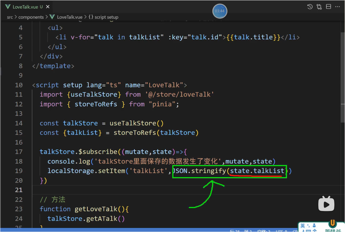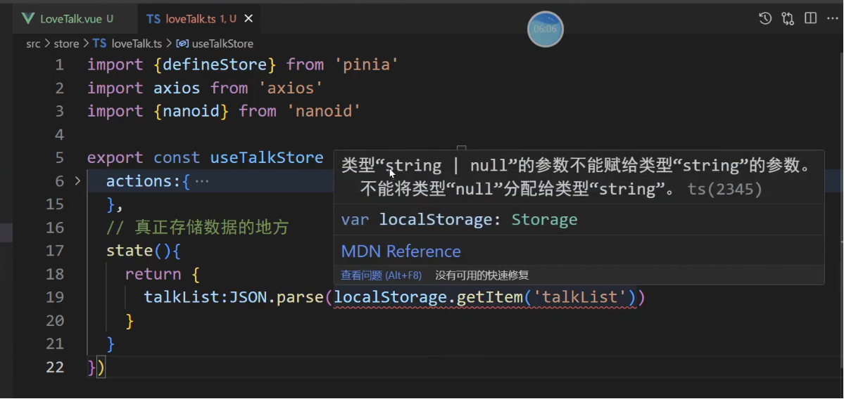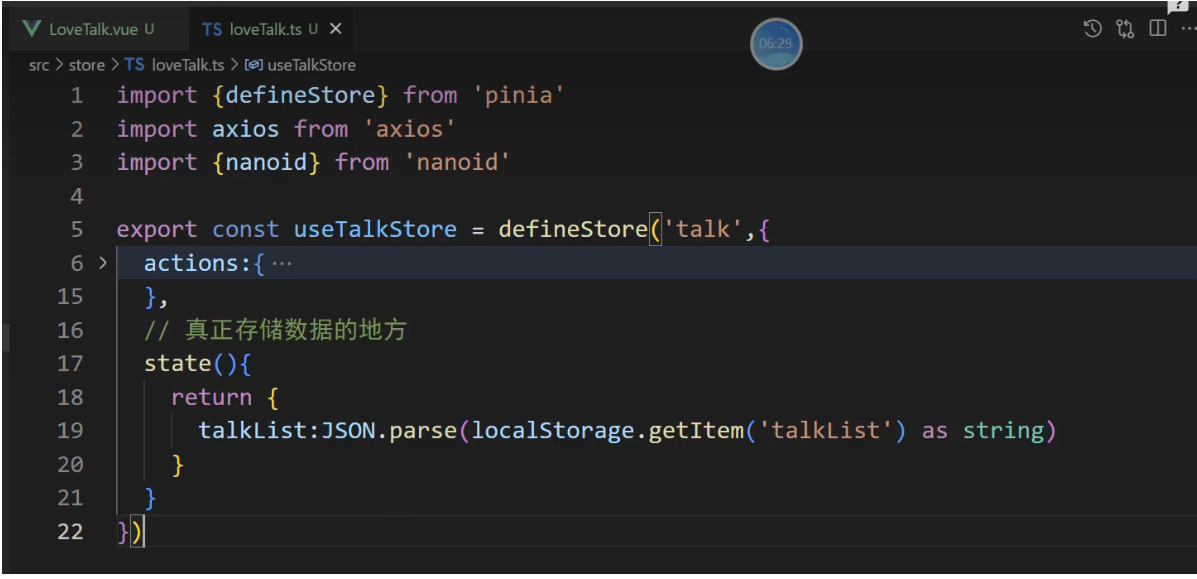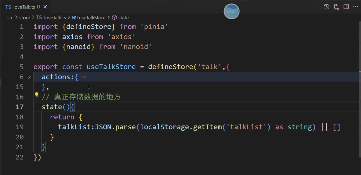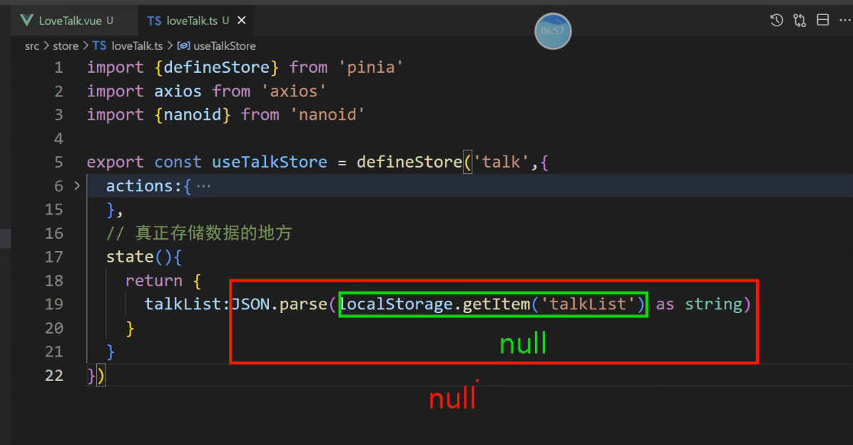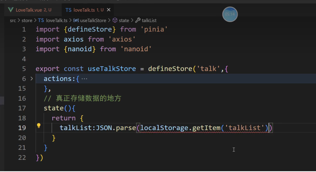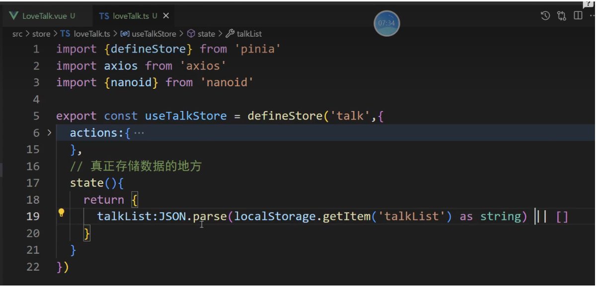 // 3, talkList:localStorage.getItem('talkList') ? JSON.parse(localStorage.getItem('talkList')!) : []
