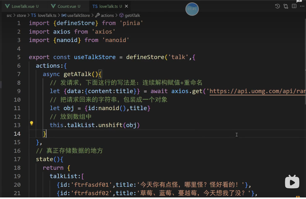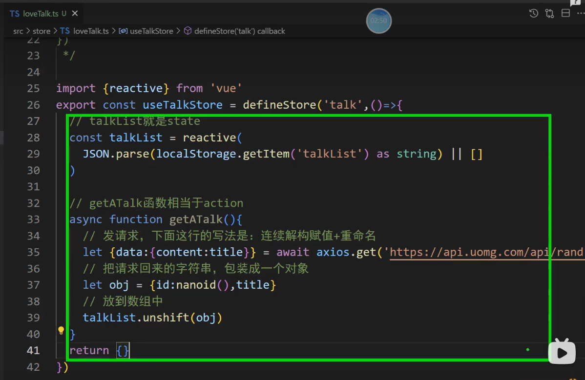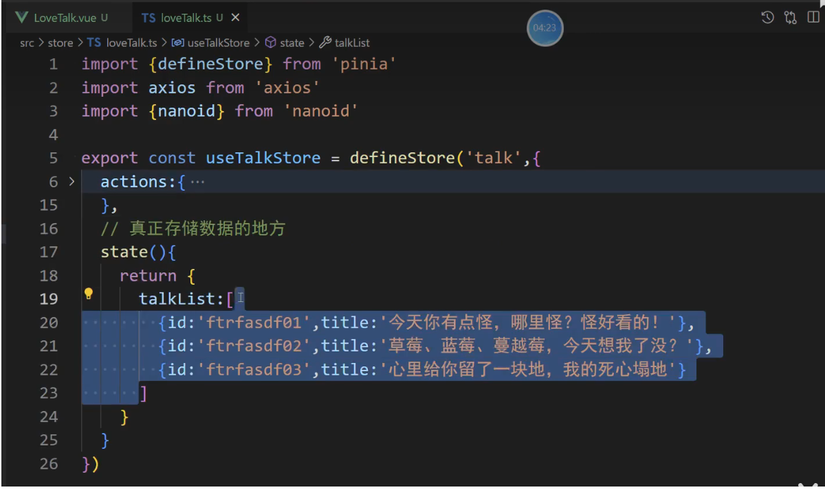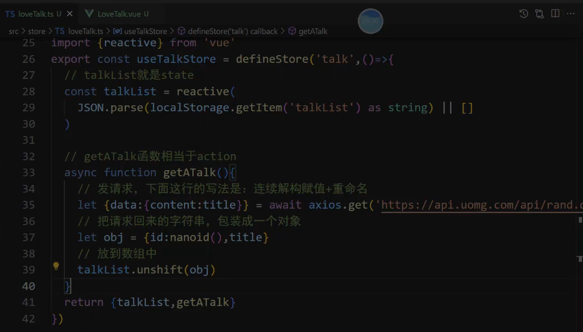 export const useTalkStore = defineStore('talk',()=>{