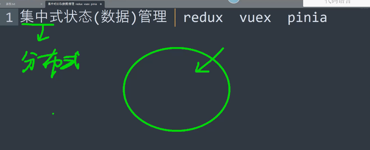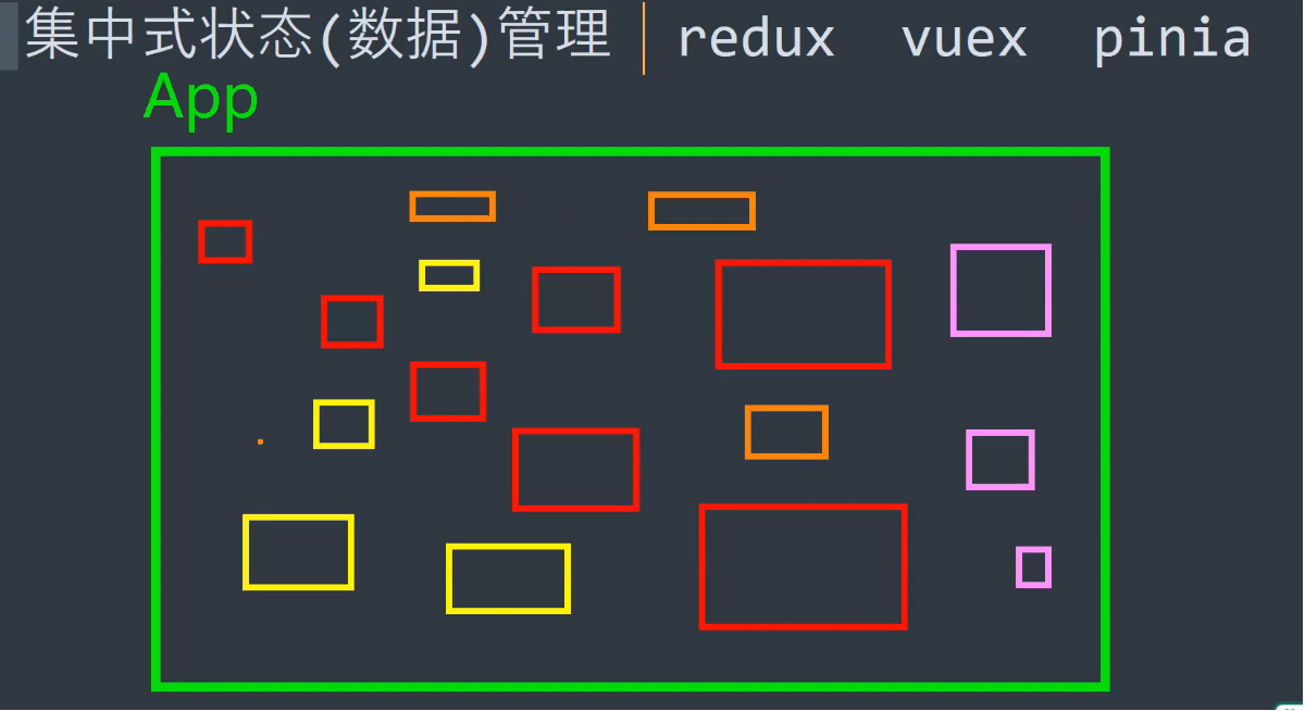 集中式状态(数据)管理除redux,vuex,pinia等以外,还包括github.com上的第三方库,其实有很多都能做集中式状态管理,什么叫集中式,简单来说,就是把所有要管理的数据放在一个容器里面,放在一个地方,这就叫集中式状态(数据)管理,跟他相对应的一个概念叫做分布式。
