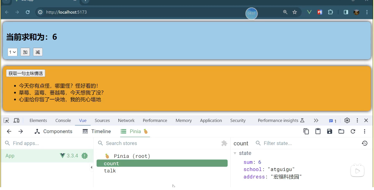 多个组件共享数据,才考虑用 pinia,接下来我们准备这些做一个效果来看看。