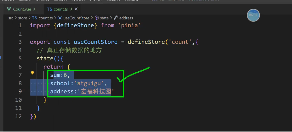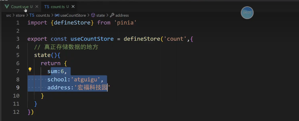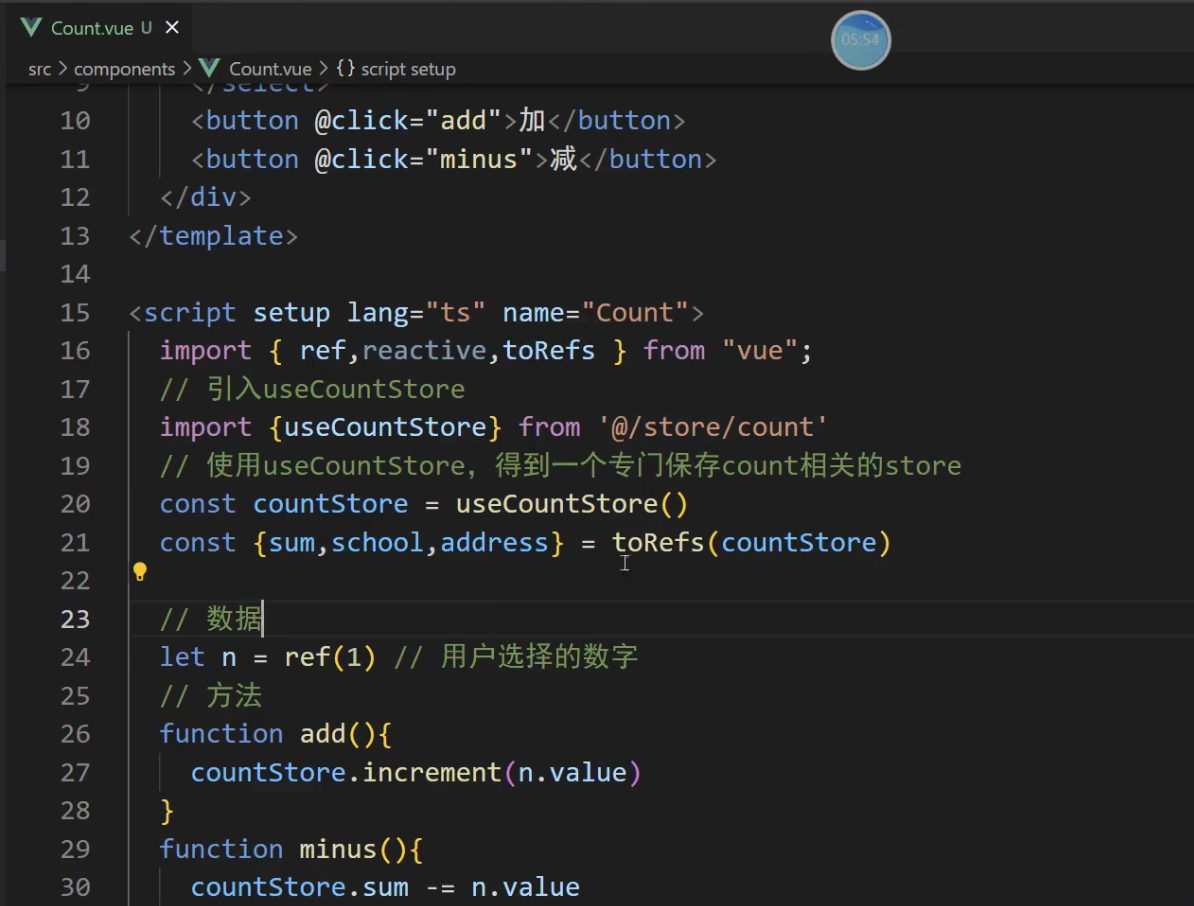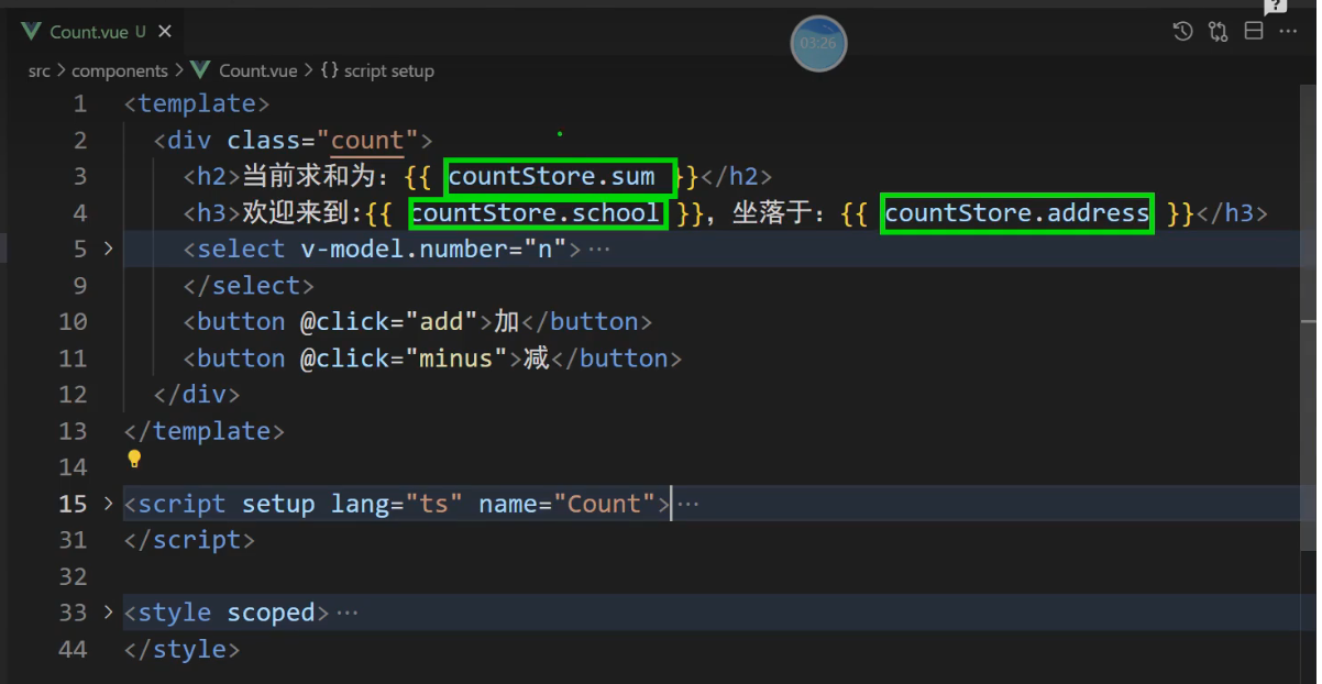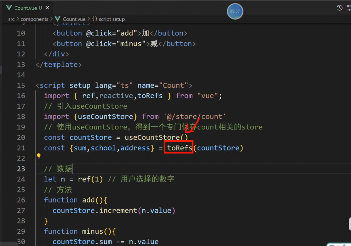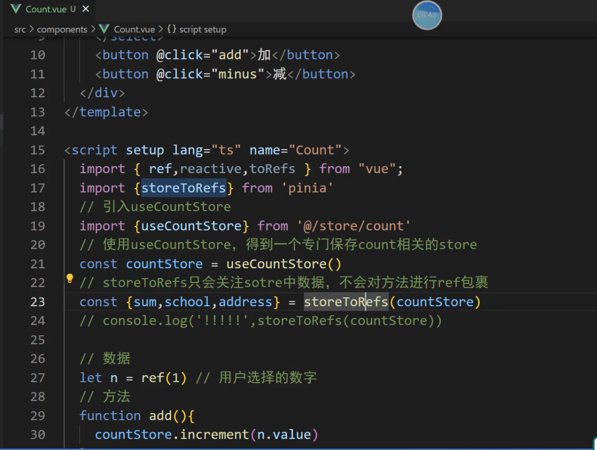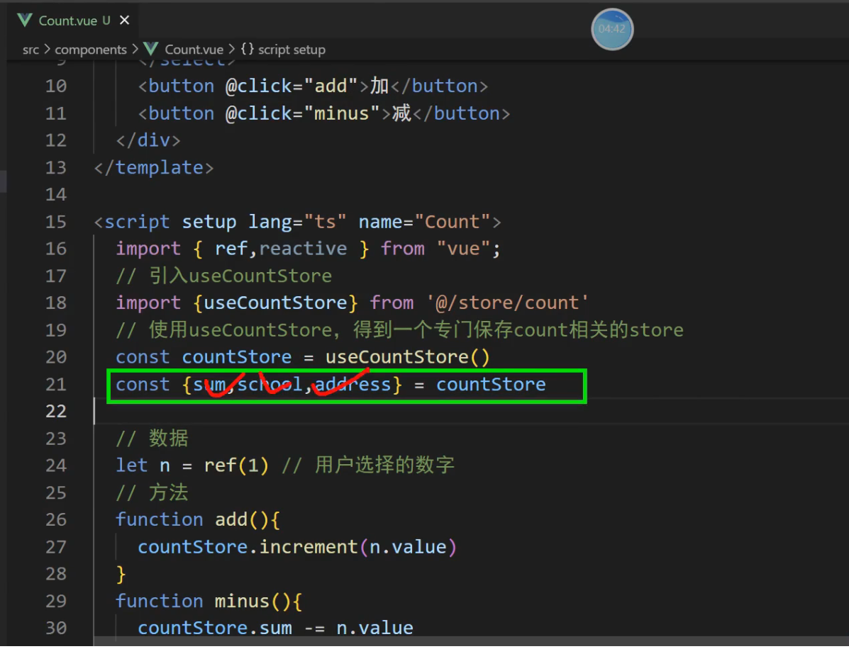 const {sum,school,address,bigSum,upperSchool} = storeToRefs(countStore)