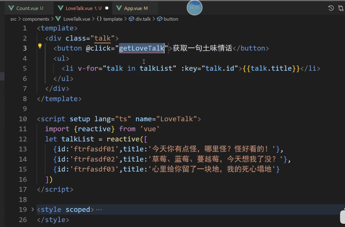 // talkList相当于state,相当于组件的data属性
